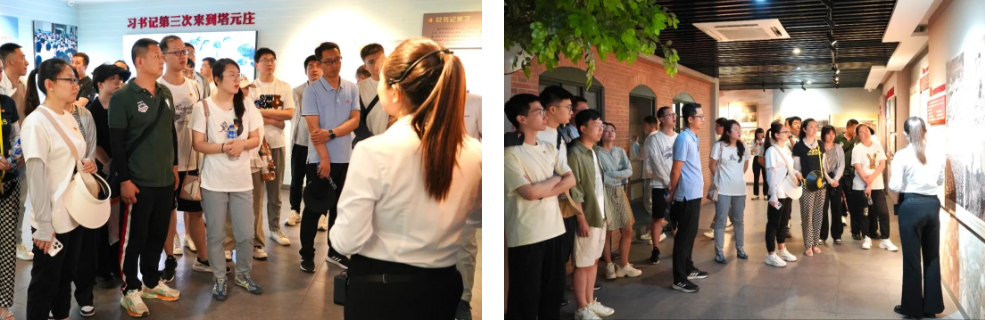 奔腾不息的滹沱河切穿太行山脉,一路蜿蜒入海,滋养了沿岸无数村庄,也见证了一个个乡村振兴的喜人历程。次日,安达维尔党员们就来到了位于滹沱河北岸的塔元庄村,在讲解员的带领下依次参观了塔元庄村文化长廊、村委会大厅、村史展览馆等,深入了解到塔元庄村党员干部带领全体村民,将塔元庄村从一个华北平原上的贫困村建设成为“全国乡村治理示范村”所发生的翻天覆地的变化。